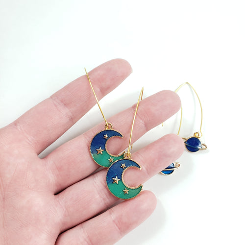 Teal + Blue Enamel Moon Earrings![]()  - Regular price